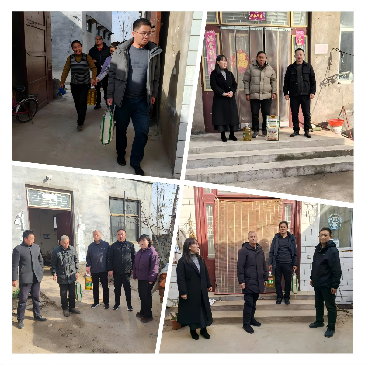 在局主要领导的带动下,水利系统全体53名帮扶队员迅速行动,分赴小河镇杜庄、北张庄等11个行政村,同步开展走访。队员们为困难群众、孤寡老人及残疾人送去米和油等慰问物资,并进行政策宣讲与情感交流,现场排查解决实际难题。