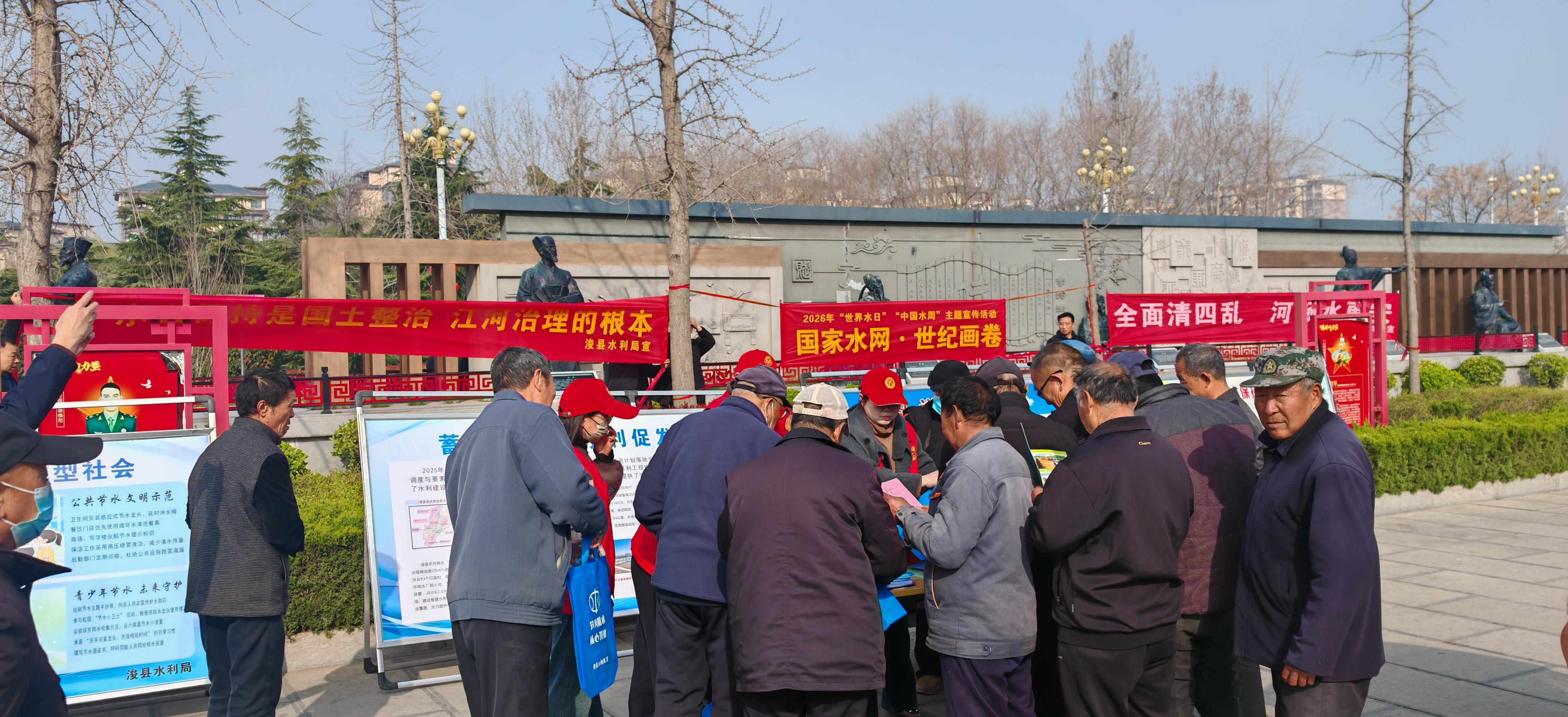 3月22日,在第三十四届“世界水日”和第三十九届“中国水周”到来之际,浚县水利局分别在浚州广场和古城北城门广场举办以“国家水网·世纪画卷”为主题的集中宣传活动,向市民普及依法治水、水法规、节约用水等知识理念。
